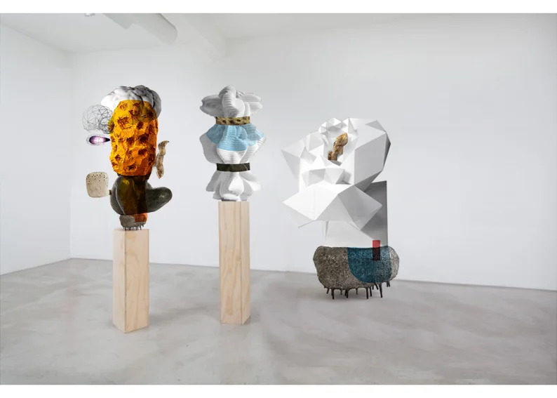 Assembling and association of materials (stone, wood, metal and bronze) and techniques (traditional and digital 3D printing).